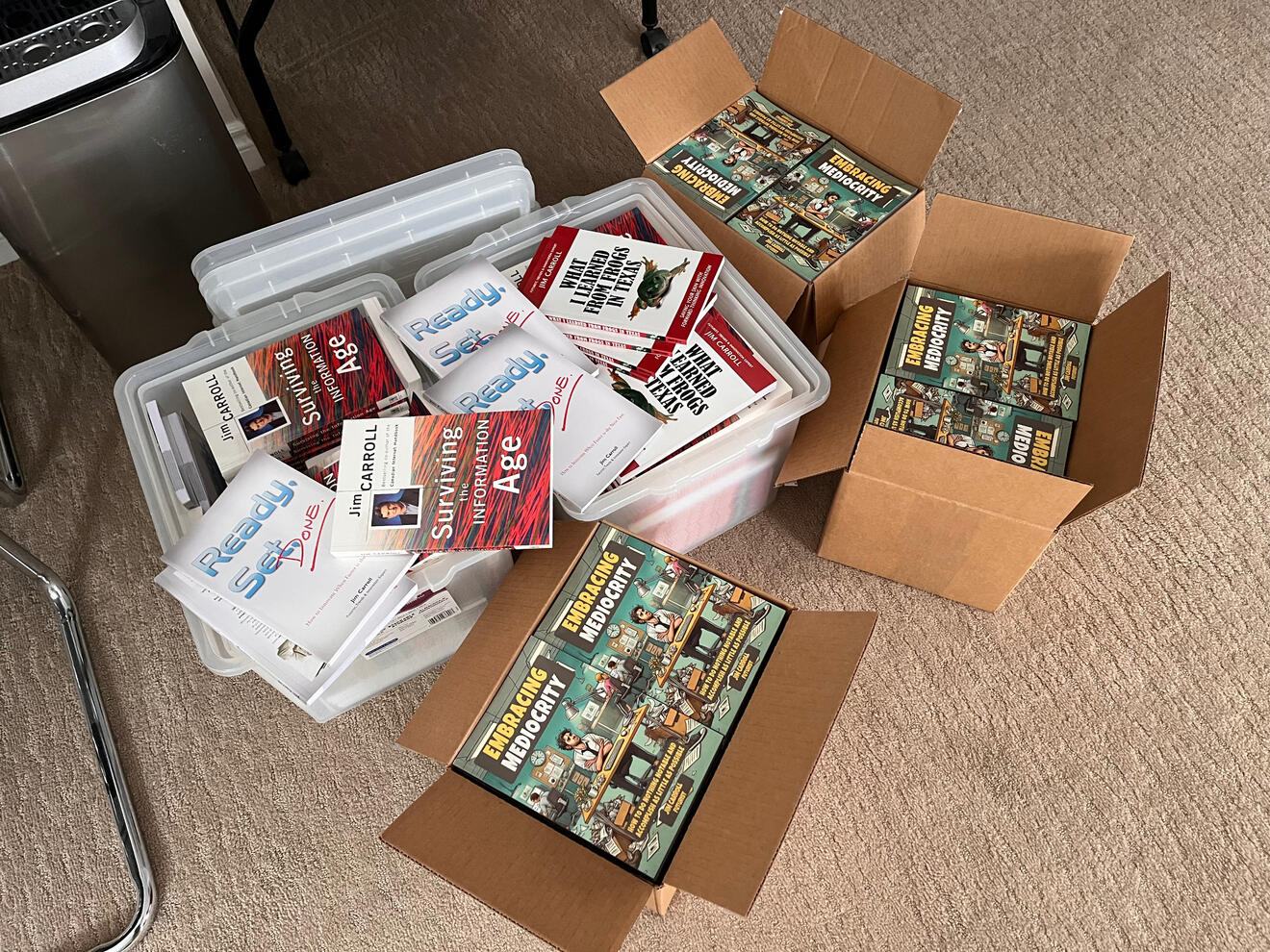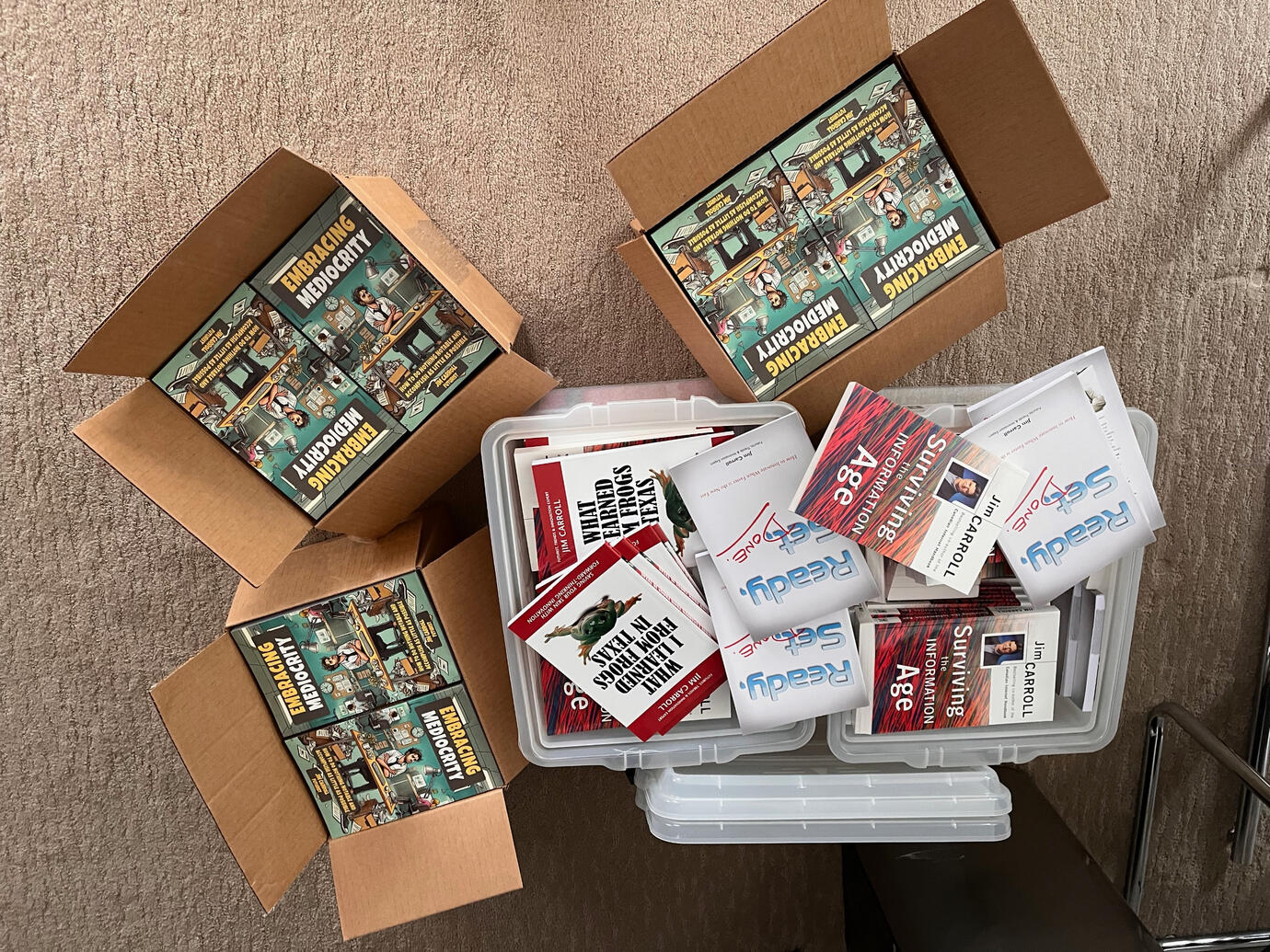 My newest books Embracing Mediocrity and Escaping Mediocrity have arrived to fulfill orders.But I still have copies of my books What I Learned from Frogs in Texas, Surviving the Information Age, and Ready, Set, Done!I need you to help clean out the closet!